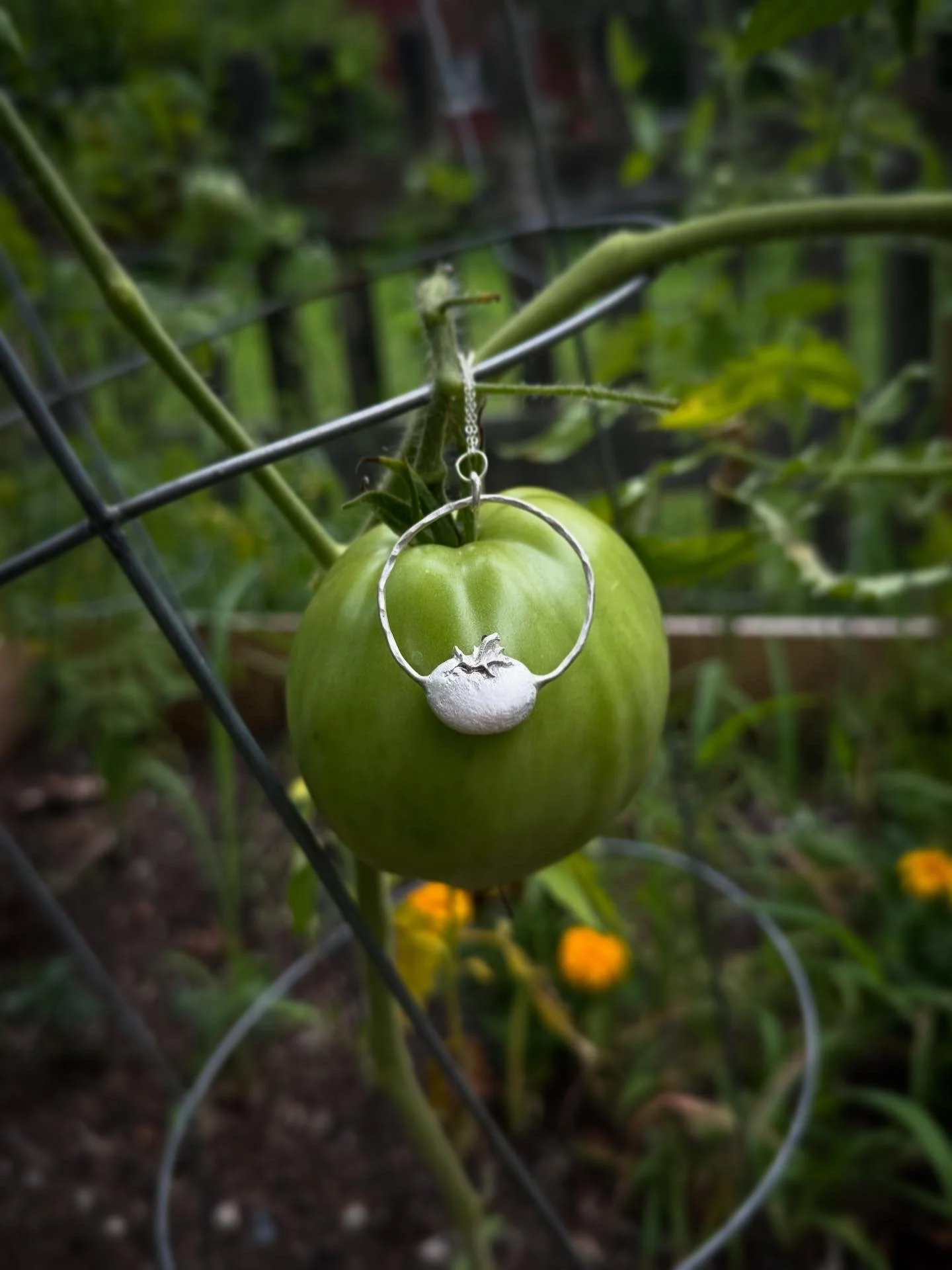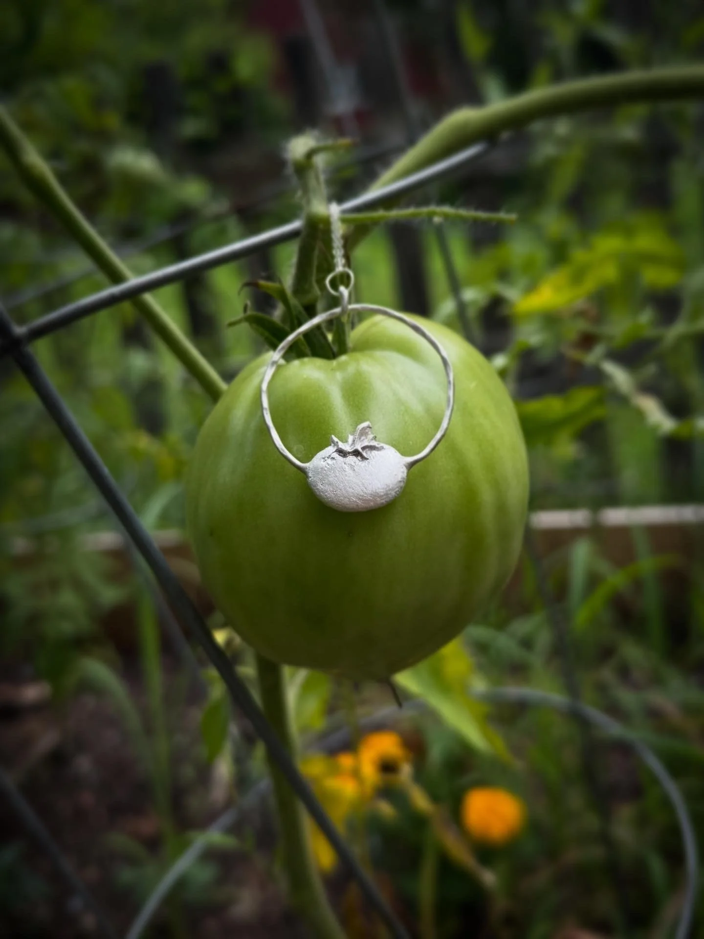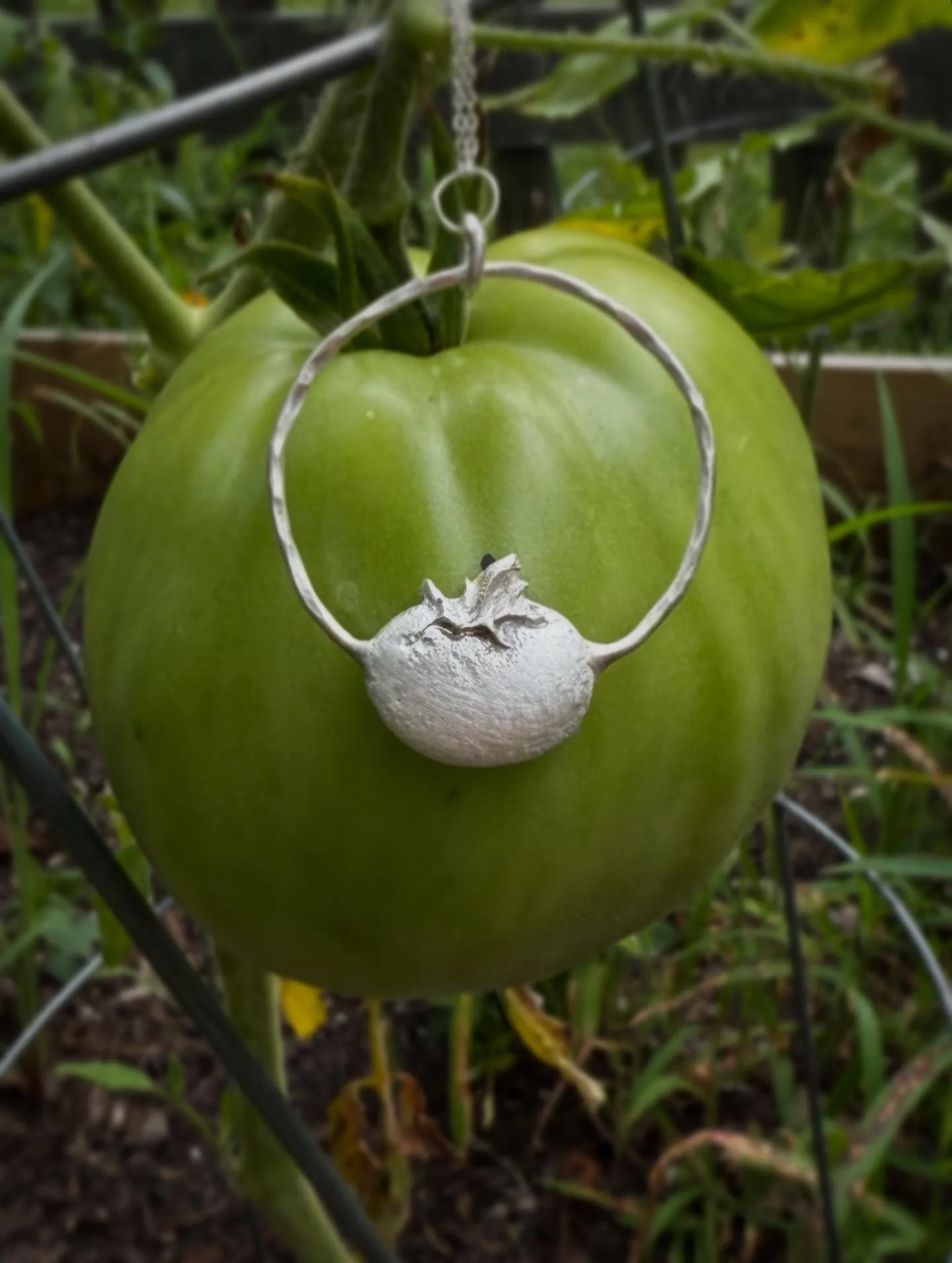 Image 1 of 3 Image 2 of 3 Image 3 of 3 Tomato Necklace $70.00 Sold Out A fine silver tomato hugged by hammered sterling silver and suspending from a sterling g silver chain. Sold Out Added! A fine silver tomato hugged by hammered sterling silver and suspending from a sterling g silver chain. Reviews Reviewer Name Review Date Star Rating Description Posted on Etsy Product Show More