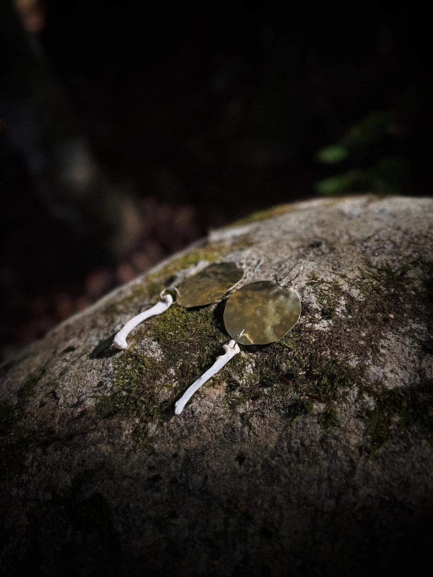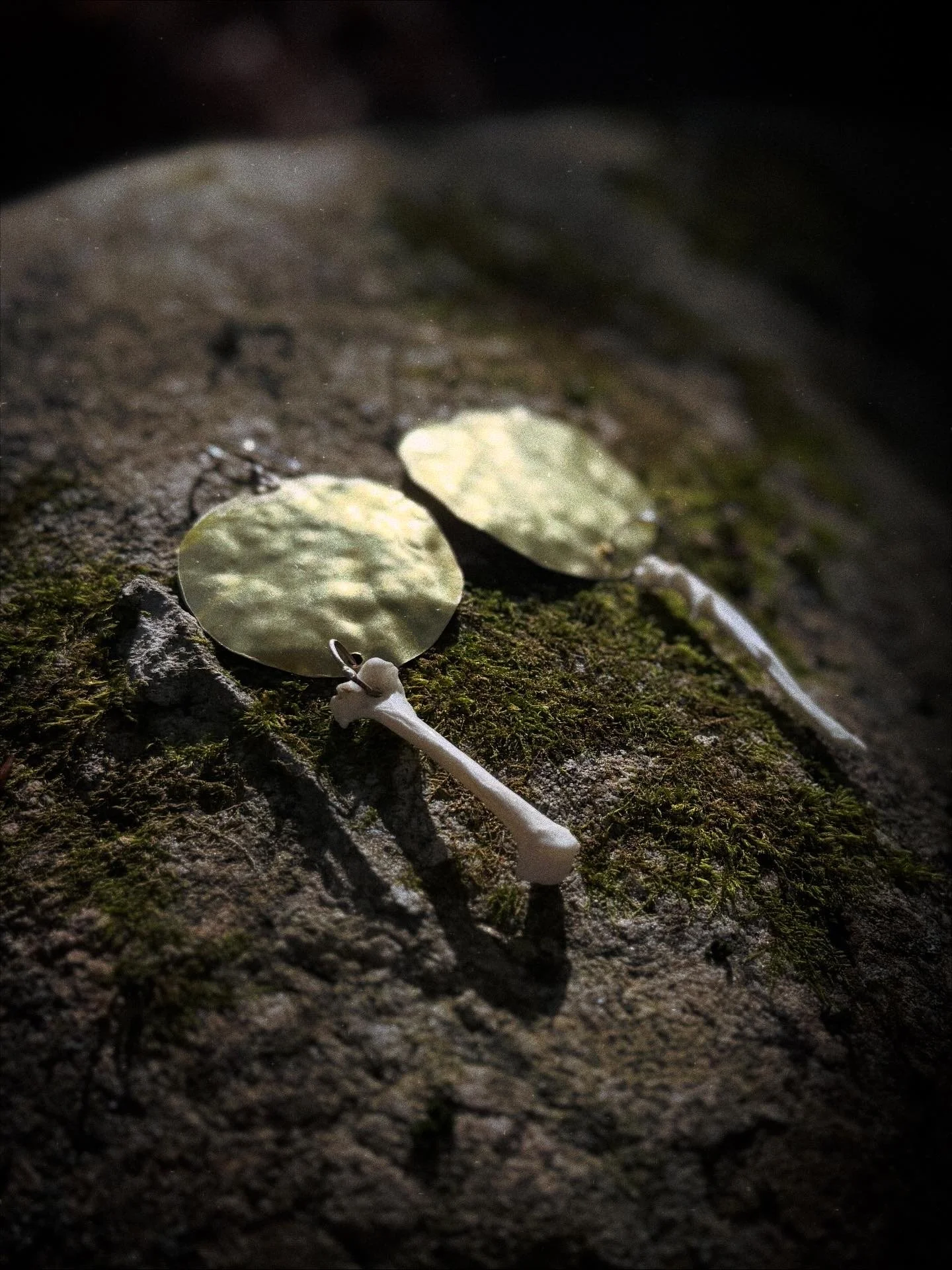 Image 1 of 4 Image 2 of 4 Image 3 of 4 Image 4 of 4 Woodland Totem Earrings $60.00 Hammered brass discs with ethically sourced fox bones dangling below, finished with handcrafted sterling silver hooks. Purchase Added! Hammered brass discs with ethically sourced fox bones dangling below, finished with handcrafted sterling silver hooks. Reviews Reviewer Name Review Date Star Rating Description Posted on Etsy Product Show More
